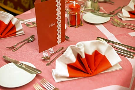 All plates, cutlery, glasses and other tableware have been sanitized