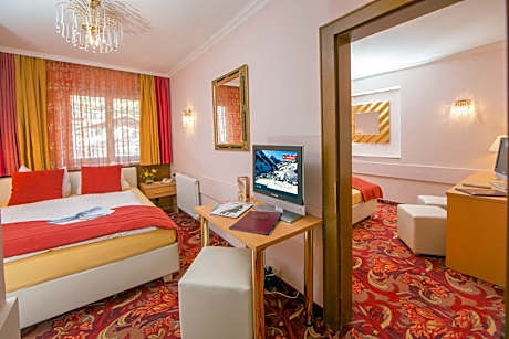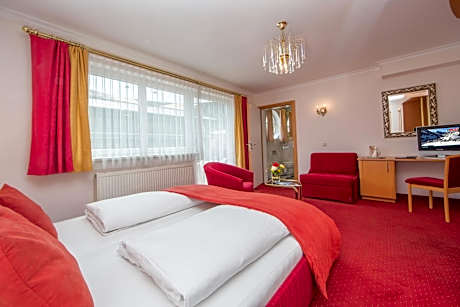 Berger's Sporthotel is located in the very center of Saalbach, at the heart of the Skicircus Saalbach-Hinterglemm-Leogang-Fieberbrunn winter sports region, only 164 feet from the Bernkogel ski elevator. Free high-speed WiFi access is available in all rooms. The hotel offers a newly designed wellness area, comfortable and spacious rooms, a big restaurant with panoramic gallery, and cozy parlors. Starting at Berger’s Sporthotel, you can easily reach numerous pubs, bars, shops and restaurant on foot. A short walk takes you to the gateway to the Saalbach-Hinterglemm Ski Circus, offering 168 mi of perfectly groomed slopes, 70 state-of-the-art cable cars and elevators, 6.2 mi of groomed cross-country ski runs, floodlit slopes and snowboard runs. All winter sports activities are directly at the doorstep in Saalbach Hinterglemm. All guests booking via this website get a 10% discount on spa and beauty treatments. From May until September the JOKER Card is included in the rate. This card offers many free benefits and discounts including elevators and public pools. License Number(s): 50618-001033-2020. ((* Sorry, this information is not available in the selected language and is shown in EN)
