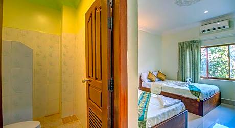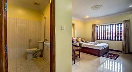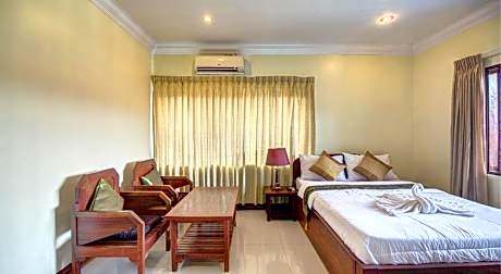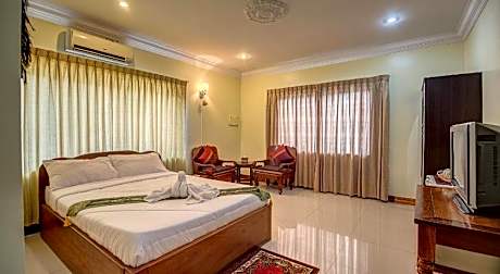 Experience an abundance of unparalleled facilities and features at DV Angkor Villa.Share your photos and respond to emails at your convenience, thanks to the free Wi-Fi internet access offered by hotel. Should you require transportation to or from the airport, hotel is able to organize it prior to your arrival date.Taxi, car hire and shuttle offerings at the hotel simplify arranging your excursions, explorations, and additional activities in Siem Reap.Visitors can take advantage of the accessible parking options directly at the hotel. Reception services such as express check-in or check-out, luggage storage and safety deposit boxes are available to accommodate your requirements.Securing top-notch tickets and snagging sought-after dining reservations become effortless, thanks to the hotel's ticket service and tours.Traveling with minimal luggage is achievable at DV Angkor Villa due to the hotel's laundry service ensuring your garments stay fresh. Room amenities feature daily housekeeping, allowing you to unwind and make the most of your visit.The hotel maintains a completely smoke-free zone, providing a breathable atmosphere.Each accommodation at DV Angkor Villa is thoughtfully created and adorned to provide visitors with a comfortable, home-like atmosphere. In certain rooms, the hotel offers linen service and air conditioning for guest convenience and satisfaction.At DV Angkor Villa, the uniquely tailored rooms provide a configuration choice resembling a balcony or terrace.In select rooms, guests at the hotel can enjoy top-notch in-room entertainment with television and cable TV available for their convenience. Rest assured, in a few chosen rooms, you will find the convenience of a refrigerator, instant tea and mini bar at your disposal. Maintain your cleanliness and comfort using a hair dryer, toiletries and bathrobes available in select guest restrooms. Experience an unforgettable evening with your fellow travelers just a short distance away, at hotel's karaoke rooms.Indulge in the numerous pursuits available at DV Angkor Villa.Unwind after your day by exploring the massage and find warmth and relaxation.. ((* Sorry, this information is not available in the selected language and is shown in EN)