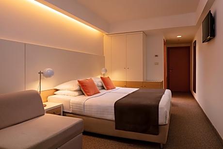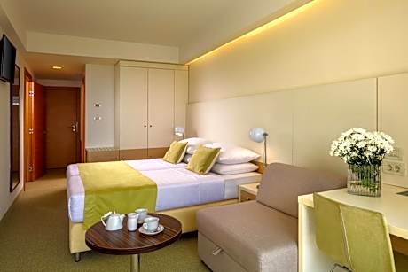 The family-friendly Hotel Vespera is surrounded by pine trees, 164 feet from the sea in the Sunny Bay, and 1.2 mi from the center of Mali Lošinj. It features a outdoor swimming pool complex with hydro-massages and waterfalls, as well as 2 children's pools, all with a sea view. The hotel restaurant serves a half board plan buffet breakfast and dinner. Drinks with dinner (juices, water; additionally from Jul 10 until Aug 26 draft beer and wine). The restaurants Veli žal, Borik and Lanterna are located near the hotel by the sea and offer refined à-la-carte cuisine. Themed culinary evenings and cooking shows are organized as well. There is also a separate corner for parents where they can prepare food for their babies. Evening entertainment offers cabaret programs, comedy nights, music quizzes and many other events. Professional entertainment teams provide educational and entertainment programs (Baby, Mini and Teen Club) which include complementary snacks and soft drinks. The young ones can have fun in well-equipped playrooms with toys and mattresses for the youngest, and there are also a video games, table football and darts. Specially designed and equipped rooms fit the needs of small children and their parents. Baby prams, bottle heaters, bathtubs and other baby equipment is available upon request. Full day care (Baby and Mini Club) are organized during summer seasons every day except Saturdays. The beach in front of the hotel is rocky and equipped with showers, lifeguards and changing cabins, boat rental, rental deckchairs and parasols. Lošinj Airport is 9.3 mi away from Family Hotel Vespera. Airport shuttle service can be arranged at an extra charge, but it has to be requested 3 days in advance.. ((* Sorry, this information is not available in the selected language and is shown in EN)