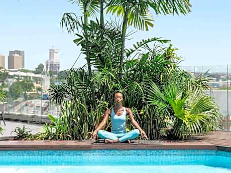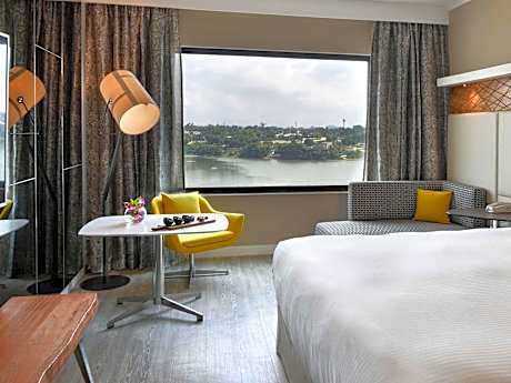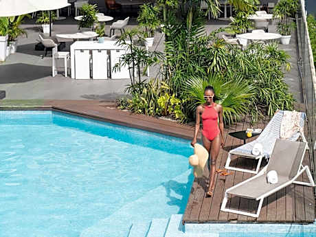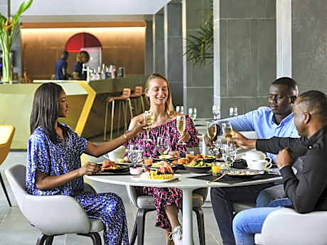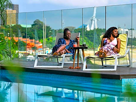 Located in the vibrant heart ofAbidjan, the Pullman Abidjan welcomes you to a world where contemporary elegance and African lifestyle meet. Just steps away from the Ébrié Lagoon, the Plateau and its business centers, the hotel offers an ideal address for discovering the city between sophistication, culture and entertainment. The rooms and suites, with their modern and sleek design, are true havens of comfort. They all have the connection Free high-speed Wi-Fi, an HD television, an elegant workspace, and refined amenities: bathrobes, slippers, a welcome tray, and a safe.- strong. A buffet breakfast as well as a selection of international and African dishes are served in the hotel restaurant. The terrace bar, with its unique view of the Ébrié Lagoon, is the ideal place to enjoy a coffee, a sunset cocktail or a snack in a chic and relaxed atmosphere. For your moments of relaxation, the Pullman Abidjan offers an outdoor pool with a pleasant view of the lagoon, as well as a fitness and wellness center dedicated to well-being, including relaxation areas and specialized treatments. The reception is open 24 hours a day and free parking is available. The staff are available to advise you on must-see places and routes to discover. THEinternational airport Félix-Houphouët-Boigny is located approximately 7.5 mi from the hotel.. ((* Sorry, this information is not available in the selected language and is shown in EN)