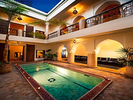 Riad Darhani is a riad featuring rooms with free Wifi and air conditioning in the center of Marrakesh. With pool views, this accommodation features a patio. The accommodation provides a 24-hour front desk, full-day security, and luggage storage for guests. At the riad, every unit is fitted with a wardrobe. There's a private bathroom with walk-in shower in every unit, along with bathrobes, a hair dryer, and free toiletries. At the riad, all units are equipped with bed linen and towels. Halal and gluten-free breakfast options with pancakes, fruit, and juice are available. Guests at the riad can take part in activities like yoga and get refreshed with a swim in the indoor pool. Sightseeing tours are available in the vicinity of the property. Guests at Riad Darhani can enjoy skiing and cycling nearby, or make the most of the sun terrace. Popular points of interest near the accommodation include Le Jardin Secret, The Orientalist Museum of Marrakech, and Mouassine Museum. Marrakech-Menara Airport is 3.1 miles away, and the property offers a paid airport shuttle service. License Number(s): 40000MH1446. ((* Sorry, this information is not available in the selected language and is shown in EN)