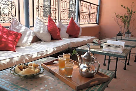 1/50 2/50 3/50 4/50 5/50 6/50 7/50 8/50 9/50 10/50 11/50 12/50 13/50 14/50 15/50 16/50 17/50 18/50 19/50 20/50 21/50 22/50 23/50 24/50 25/50 26/50 27/50 28/50 29/50 30/50 31/50 32/50 33/50 34/50 35/50 36/50 37/50 38/50 39/50 40/50 41/50 42/50 43/50 44/50 45/50 46/50 47/50 48/50 49/50 50/50 عرض جميع الصور العودة سابق التالي تقع المسؤولية على عاتق سلسلة الفنادق و / أو الملكية الفردية لضمان دقة الصور المعروضة. Viaggio ليست مسؤولة عن أي عدم دقة في الصور. Riad Dar Nimbus 40 Diour Jdad, Marrakesh 40000, Morocco, Marrakech 40000 View map وصف الفندق With a rooftop terrace and panoramic views of Marrakech’s Old Medina and the Atlas Mountains, Riad Spa Dar Nimbus features an authentic Moroccan design. Guests can relax in the hammam or in the Spa or cool off in the plunge pool in the patio. The air-conditioned guest rooms at Riad Spa Dar Nimbus are traditionally decorated with colorful Zellige tiles. All rooms have free Wi-Fi and an private bathroom, and some include a TV and a fireplace. Moroccan cuisine can be enjoyed in the dining area or on the terrace, and a continental breakfast is served daily. The riad can organize on-site massages, babysitting and visits of the surrounding area. The property is 1 mi from the Majorelle Garden and 2.5 mi from Bahia Palace. Marrakech – Menara Airport is a 15-minute drive away and an airport shuttle service is available upon demand. License Number(s): 40000MH1562. ((* Sorry, this information is not available in the selected language and is shown in EN) الخدمات الفندقية Room Service Car Rental Daily Housekeeping Coffee Shop 24 hour front desk Sun Loungers Or Beach Chairs Parking - Charges may apply Entertainment Services Property is cleaned with disinfectant Restaurant Property confirms they are implementing guest safety measures Ironing Amenities Bed sheets and towels are washed at a temperature of at least 60°C/140°F Shared stationery such as printed menus, magazines, pens, and paper removed Air Conditioning Hot Tub or Spa Concierge Wheelchair Access Indoor Tanning Fire Extinguishers Accessible Toilet Facilities For Disabled Guests Available Shared Lounge/TV Area Fax/Photocopying Soundproof Rooms Available Sun Deck Balcony/Terrace Babysitting Services Kids' Pool Masks are available to guests Swimming Pool - Outdoor Plunge Pool Snack Bar Live Entertainment Luggage Storage & Lockers Golf Course Swimming Pool Key Access Accessible Bathroom Available Guests are provided with free hand sanitizer Cashless Payment Available In room safe Social distancing measures are in place Check-In/Out - Private Parking - Off-Site Attraction Shuttle Service - Charges may apply Internet Access - Free Public Access Outdoor Furniture Invoices Airport Transportation - Charges may apply Currency Exchange Check-In/Out - Express First Aid Kit Available Facility Heat Tour Services All plates, cutlery, glasses and other tableware have been sanitized Fruits Acrylic shield between guests and staff in main contact areas 24-Hour Security Board Games/Puzzles Beauty Services Themed Dinner Nights Laundry Non-Smoking Rooms Available Massage Services Fence Around Pool Family Rooms Pet Friendly Lounge/Bar معلومات تكبير الشاشة اغلاق تكبير الشاشة