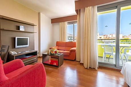 Hotel LIVVO Corralejo Beach is set on the seafront in Fuerteventura’s Corralejo, just 164 feet from the beach. Guests will find an outdoor swimming pool and free WiFi throughout. All rooms come with a private bathroom, living room, telephone, satellite TV, WiFi and adjustable air conditioning. A safety deposit box is available for an extra charge. Hotel LIVVO Corralejo Beach offers 24-hours reception, elevator, gym, and a restaurant. The hotel has a covered parking, car and bike rental, a snack bar, and a solarium with sunbeds and sunshades. Corralejo Harbor is 1312 feet away and offers direct ferries to Lanzarote. Corralejo Sand Dunes are less than 1.2 mi away.. ((* Sorry, this information is not available in the selected language and is shown in EN)
