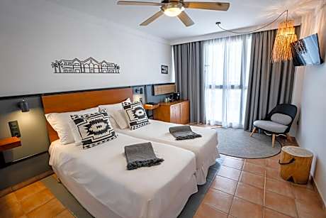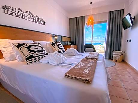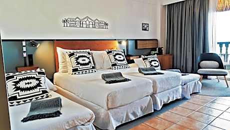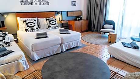 The Family Rooms with Pool View at the Hotel Coral Cotillo Beach provide a spacious 29m2 setting for a comfortable stay. These rooms feature two single beds, 1 sofa bed and 1 extra bed, fridge, coffee machine with integrated water heater, tray with coffee, tea, milk and sugar as well as air conditioning, safety deposit box, LED lights, Satellite Television 32", telephone, bathroom with bathtub, hair dryer and free Wi-Fi. Hotel Cotillo Beach offers gardens and a children’s play area. You can relax on a lounger on the poolside terrace. The newly renovated property also features of an indoor gym, an outdoor crossfit gym with calisthenics and a climbing wall, as well as a 5-a-side soccer field. It also offers a cycling center to store bicycles and a facility to store surfboards. Decorated in warm colors, each room at Hotel Cotillo Beach offers a fan and a rental safe. The private bathroom includes a hairdryer. The hotel’s 24-hour reception offers car rental and free parking can be found nearby. Corralejo is 12 mi away, while Fuerteventura Airport is a 45-minute drive away.. ((* Sorry, this information is not available in the selected language and is shown in EN)