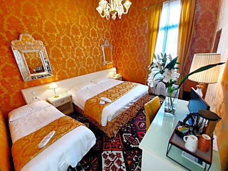 1/50 2/50 3/50 4/50 5/50 6/50 7/50 8/50 9/50 10/50 11/50 12/50 13/50 14/50 15/50 16/50 17/50 18/50 19/50 20/50 21/50 22/50 23/50 24/50 25/50 26/50 27/50 28/50 29/50 30/50 31/50 32/50 33/50 34/50 35/50 36/50 37/50 38/50 39/50 40/50 41/50 42/50 43/50 44/50 45/50 46/50 47/50 48/50 49/50 50/50 عرض جميع الصور العودة سابق التالي تقع المسؤولية على عاتق سلسلة الفنادق و / أو الملكية الفردية لضمان دقة الصور المعروضة. Viaggio ليست مسؤولة عن أي عدم دقة في الصور. Corte dei Greci Fondamenta dell'Osmarin, Castello 4973 - 4975, 30122, Venice, Italy, Venice 30122 View map وصف الفندق The elegant Hotel Corte dei Greci is just a 3-minute walk from St. Mark's Square and the Bridge of Sighs, in one of the most characteristic areas of Venice. Rooms and common areas at Hotel Corte dei Greci have been beautifully restored and feature characteristic 18th-century Venetian décor, frescoes and Murano glass as well as modern amenities. Some rooms have pretty views of the canal, while some overlook the internal garden or the Venetian rooftops. All rooms come with LCD TV and Wi-Fi access. The property does not have an elevator. Located just around the corner from San Zaccaria Church, in a peaceful part of Venice, Hotel Corte dei Greci enjoys the perfect location for exploring the city. The S. Zaccaria vaporetto (water bus) stop is a short walk away. License Number(s): 027042-ALB-00044, IT. ((* Sorry, this information is not available in the selected language and is shown in EN) الخدمات الفندقية Room Service Daily Housekeeping Meeting/Banquet Facilities 24 hour front desk Property is cleaned with disinfectant Restaurant Property confirms they are implementing guest safety measures Ironing Amenities Bed sheets and towels are washed at a temperature of at least 60°C/140°F Air Conditioning Concierge Fire Extinguishers Fax/Photocopying Soundproof Rooms Available Balcony/Terrace Babysitting Services Electronic Room Key Masks are available to guests Contactless check-in and check-out are available Luggage Storage & Lockers Key Access Guests are provided with free hand sanitizer Cashless Payment Available In room safe Social distancing measures are in place Check-In/Out - Private Takeout Dining Services Available Attraction Shuttle Service - Charges may apply Internet Access - Free Public Access Audible Alarm Invoices Airport Transportation - Charges may apply Check-In/Out - Express First Aid Kit Available Facility Heat Tour Services All plates, cutlery, glasses and other tableware have been sanitized Smoke Alarms Acrylic shield between guests and staff in main contact areas 24-Hour Security Laundry Non-Smoking Rooms Available Non-Smoking Facility Business Center Family Rooms Pet Friendly CCTV security in common areas Food Delivery تكبير الشاشة اغلاق تكبير الشاشة