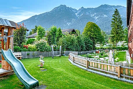 The 4-star superior hotel has been family-run since 1634 and offers an indoor swimming pool, various saunas, steam baths, a children's playground and a cozy lounge. It has panorama garden with a view of the Zugspitze mountain peak and is located just few minutes' walk from the center of Garmisch-Partenkirchen. The rooms of Obermühle 4*S Boutique Resort are decorated in a traditional Alpine style. All rooms have a balcony or terrace offering a view of the Bavarian Alps. A rich breakfast buffet with organic and regional options is served at the Obermühle 4*S Boutique Resort. Regional cuisine is served in the Reiser's restaurant, and evening drinks are offered in the Bar Loup, which features panoramic windows. The indoor swimming pool of the Obermühle 4*S Boutique Resort has large panoramic windows with mountain view. Guests can also enjoy a hot tub as well as a modern spa area with a salt sauna, a Finnish sauna, a bio sauna, steam baths, an infrared cabin and several relaxation areas. The garden includes a sunbathing lawn. The Obermühle 4*S Boutique Resort is an ideal base for exploring nearby attractions. In summer, guests can rent electric bicycles. Popular activities include hiking, cycling and winter sports. Eibsee Lake and Ettal Abbey are a 15-minute drive. Popular Linderhof Castle is 30 minutes away by car. Free private parking is available on site and additional garage parking is available for a fee. The hotel offers a free shuttle service.. ((* Sorry, this information is not available in the selected language and is shown in EN)
