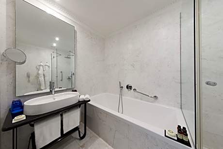 Located on Rome's Via Veneto opposite the American Embassy, this luxury hotel dates back to the 1920s. With free WiFi throughout, this property offers rooms with designer furnishings, an à la carte restaurant, and a free spa. Villa Borghese is 1312 feet away. All air conditioned, rooms at the Grand Hotel Palace include an LCD satellite TV and a mini-bar. The marble bathroom includes VIP toiletries. Guests can enjoy fine Italian cuisine at the Cadorin Restaurant. Breakfast is an extensive American buffet with sweet and savory options. After a day out, guests can unwind at the wellness center which includes a sauna and a hot tub. Massages can be reserved, and a fitness center is also available. The building, designed by Marcello Piacentini, was stylishly restored by Italo Rota. The Cadorin grand hall, and the ultra-modern business lounge with bar, are ideal for relaxation. The hotel is 5 minutes' walk from Piazza Barberini and Barberini Metro Station, on line A. The Spanish Steps are a 10-minute walk away. License Number(s): 058091-ALB-00427, IT. ((* Sorry, this information is not available in the selected language and is shown in EN)