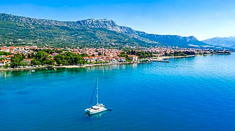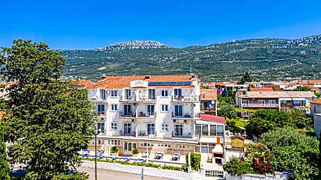 Welcome to Hotel Kastel, a premium boutique hotel experience on the Croatian coastline. This modern 3-star hotel enjoys a quiet location in the center of Kaštel Lukšić, just 70 meters from the beach and promenade. Stroll through charming squares and streets, discovering the remnants of medieval castles. Conveniently situated between Split and Trogir, Hotel Kastel offers 24 rooms across three floors. Choose from Standard Double, Family, and Deluxe rooms, each equipped with a private bathroom, air conditioning, satellite TV, and Wi-Fi. The hotel also features an on-site café, bar, and restaurant. Enjoy complimentary breakfast, Wi-Fi, and parking, along with convenient services such as laundry, ironing, and transfers (available for an extra charge). Relax on the outdoor terrace and soak in the Mediterranean atmosphere.