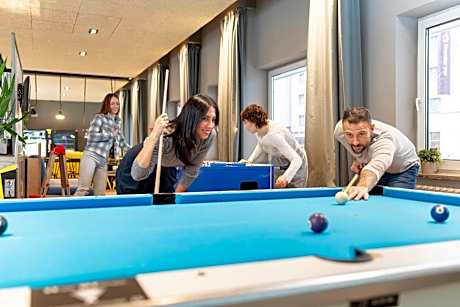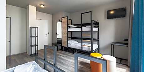 1/37 2/37 3/37 4/37 5/37 6/37 7/37 8/37 9/37 10/37 11/37 12/37 13/37 14/37 15/37 16/37 17/37 18/37 19/37 20/37 21/37 22/37 23/37 24/37 25/37 26/37 27/37 28/37 29/37 30/37 31/37 32/37 33/37 34/37 35/37 36/37 37/37 View all images Back Previous Next The supplier or owner of this product shall be responsible for the accuracy of the above images. Viaggio shall not be responsible for innacuracies. A&O Nürnberg Hauptbahnhof Bahnhofstraße 13-15, 90402 Nürnberg, Germany, Nuremberg 90402 View map Hotel description Just a 3-minute walk from Nuremberg Train Station and a 5-minute walk from the Old Town, this hostel offers modern rooms and a 24-hour reception. The a&o Nürnberg Hauptbahnhof has brightly decorated rooms with wooden floors. A desk and private bathroom are provided. WiFi is available free of charge in all rooms and public areas. A breakfast buffet is offered at the a&o Nürnberg Hauptbahnhof. Guests can relax in the bar and enjoy a game of billiards. Guests can also enjoy satellite TV broadcasting various sport channels in the lobby and bar. From Nuremberg Train Station, underground trains run to the Nuremberg Trade Fair in just 10 minutes. Hotel services Daily Housekeeping Meeting/Banquet Facilities 24 hour front desk Mobile app for room service Parking - Charges may apply Property is cleaned with disinfectant Electric Vehicle Charging Station Restaurant Property confirms they are implementing guest safety measures Bed sheets and towels are washed at a temperature of at least 60°C/140°F Shared stationery such as printed menus, magazines, pens, and paper removed Vending Machine Strollers Facilities For Disabled Guests Available Fax/Photocopying Property uses a professional cleaning service Balcony/Terrace Electronic Room Key Masks are available to guests Contactless check-in and check-out are available Snack Bar Live Entertainment Luggage Storage & Lockers Individually-wrapped food options are available Cashless Payment Available In room safe Social distancing measures are in place Check-In/Out - Private Internet Access - Free Public Access Shared Kitchen ATM Machine Billiards Elevator Outdoor Furniture Invoices Check-In/Out - Express First Aid Kit Available Facility Heat Tour Services All plates, cutlery, glasses and other tableware have been sanitized Acrylic shield between guests and staff in main contact areas BBQ Grills Laundry Parking - On-Site Non-Smoking Facility Happy Hour Alcohol Family Rooms Pet Friendly Lounge/Bar Food Delivery Fullscreen Close fullscreen