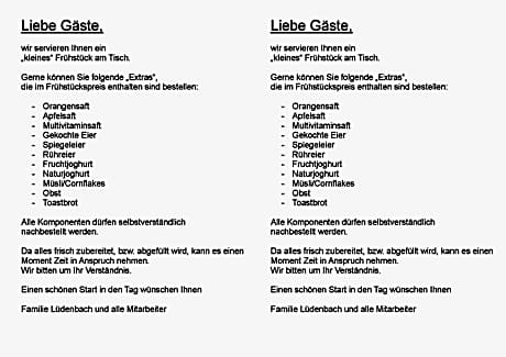 1/50 2/50 3/50 4/50 5/50 6/50 7/50 8/50 9/50 10/50 11/50 12/50 13/50 14/50 15/50 16/50 17/50 18/50 19/50 20/50 21/50 22/50 23/50 24/50 25/50 26/50 27/50 28/50 29/50 30/50 31/50 32/50 33/50 34/50 35/50 36/50 37/50 38/50 39/50 40/50 41/50 42/50 43/50 44/50 45/50 46/50 47/50 48/50 49/50 50/50 View all images Back Previous Next The supplier or owner of this product shall be responsible for the accuracy of the above images. Viaggio shall not be responsible for innacuracies. Hotel Restaurant Lüdenbach GmbH Klef 99, 51491 Overath, Germany, Overath 51491 View map Hotel description Located in Overath, 16 miles from LANXESS Arena, Hotel Restaurant Lüdenbach provides accommodations with a garden, free private parking, a shared lounge and a terrace. With free WiFi, this 3-star hotel offers room service and a concierge service. Guests can use a bar. Guest rooms at the hotel are equipped with a seating area, a flat-screen TV with satellite channels and a private bathroom with free toiletries and a shower. The rooms include a desk. Breakfast is available, and includes continental, vegetarian and gluten-free options. At Hotel Restaurant Lüdenbach you'll find a restaurant serving European cuisine. Dairy-free, vegan and gluten-free options can also be requested. The accommodation has a playground. The area is popular for hiking and cycling, and bike rental is available at Hotel Restaurant Lüdenbach. Cologne Fairgrounds is 16 miles from the hotel, while Messe/Deutz Station is 16 miles away. Cologne Bonn Airport is 19 miles from the property. Hotel services Room Service Children's Play Area Daily Housekeeping Meeting/Banquet Facilities Mobile app for room service Property is cleaned with disinfectant Electric Vehicle Charging Station Restaurant Property confirms they are implementing guest safety measures Ironing Amenities Bed sheets and towels are washed at a temperature of at least 60°C/140°F Shared stationery such as printed menus, magazines, pens, and paper removed Hot Tub or Spa Concierge Hiking Access to health care professionals Picnic Area Fire Extinguishers Shared Lounge/TV Area Fax/Photocopying Soundproof Rooms Available Sun Deck Property uses a professional cleaning service Cycling Balcony/Terrace Bike Tours Luggage Storage & Lockers Golf Course Key Access Guests are provided with free hand sanitizer Individually-wrapped food options are available Cashless Payment Available In room safe Social distancing measures are in place Check-In/Out - Private Attraction Shuttle Service - Charges may apply Internet Access - Free Public Access Bowling Outdoor Furniture Audible Alarm Invoices Garden Check-In/Out - Express First Aid Kit Available Facility Heat Tour Services Parking - Free All plates, cutlery, glasses and other tableware have been sanitized Smoke Alarms Acrylic shield between guests and staff in main contact areas Allergy-Free Rooms Available Laundry Horseback Riding Non-Smoking Rooms Available Parking - On-Site Non-Smoking Facility Alcohol Pet Friendly CCTV security in common areas Lounge/Bar Food Delivery Information Fullscreen Close fullscreen