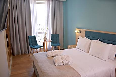 Nestled in the heart of Athens, beneath the iconic Acropolis Hill and surrounded by some of the city's most famous landmarks -including the Odeon of Herodes Atticus, the Tower of the Winds and the Temple of Olympian Zeus- the Arethusa Hotel invites you to experience the vibrant energy of this historic city. Inspired by the iconic architecture of the late 1960s and the modern urban vibes of Athens, this 3-star hotel with 87 rooms is located on Mitropoleos Street, a prime spot that blends retro charm with the bustling atmosphere of one of downtown’s most commercial areas. Just a short walk (3 minutes) from Syntagma Square and the central metro station, as well as the Parthenon (10-15 minutes), the Arethusa Hotel is the perfect base for tourists. Immerse yourselves in authentic Athenian life while sightseeing and explore Greece’s rich history. The hotel’s central location also makes it an ideal spot for discovering some of Athens’ hidden gems, including high-end jewelry boutiques, unique concept stores, third-wave coffee shops, top-notch restaurants and local artists’ ateliers and galleries. For the most jaw-dropping view of the city, head to the hotel’s rooftop. Grab a Fer-Forgé chair, relax, and let the Athenian sun reflect off the ancient marbles of the Parthenon gleaming in the sunlight. This spot will soon be even more spectacular, as the rooftop is set for a complete renovation to become one of Athens' most dazzling destinations. Whatever your needs, let our experienced staff help you in the best way possible. Hospitality is one of the Arethusa Hotel's core values, and it's only a request away for you to experience it. Available 24 hours, our staff at the front desk can arrange car rentals, taxi calls, and guided tours, while offering valuable information on transportation and sightseeing, whether it’s a visit to the Acropolis or a ride to Sounion. Regarding your personal belongings, we offer luggage storage for free or with a fee depending on the duration. As for your food and drink choices, we offer an American-style buffet breakfast and a certified Greek breakfast (served from 06:30 AM to 10:00 AM) on the half floor, as well as access to a modern café on the ground floor. For your meals or light dinners, the Arethusa Hotel gives you the opportunity to enjoy a personalized dining experience by scanning a QR code in your room that connects you to the best restaurant options via the Tasteat app -your food concierge. Our hotel guarantees room cleaning every other day (during breakfast hours), including a full replacement of toiletries and a change of bed linens to ensure a tidy space for your relaxation. If you would prefer daily housekeeping, simply let us know and we will be happy to assist you. License Number(s): 1033379