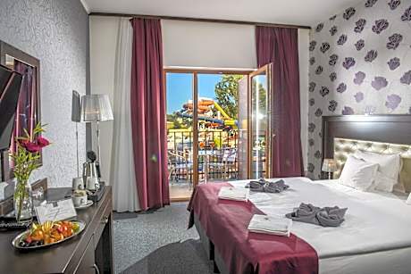 1/50 2/50 3/50 4/50 5/50 6/50 7/50 8/50 9/50 10/50 11/50 12/50 13/50 14/50 15/50 16/50 17/50 18/50 19/50 20/50 21/50 22/50 23/50 24/50 25/50 26/50 27/50 28/50 29/50 30/50 31/50 32/50 33/50 34/50 35/50 36/50 37/50 38/50 39/50 40/50 41/50 42/50 43/50 44/50 45/50 46/50 47/50 48/50 49/50 50/50 View all images Back Previous Next The supplier or owner of this product shall be responsible for the accuracy of the above images. Viaggio shall not be responsible for innacuracies. Hotel Termálkristály Aqualand **** superior Ráckeve, Strand u. 4, 2300 Hungary, Rackeve 2300 View map Hotel description The Session Hotel Ráckeve is located in a 5-hectare, fabulously beautiful area on the banks of the Danube with direct access to the Aqua Land Thermal and Adventure Baths. The property also offers 25 elegant accommodations units. The on-site restaurant with panoramic views serves Hungarian cuisine and international dishes. All accommodations units consist of an LCD satellite TV and a balcony. Each unit has a private bathroom with a bathtub or a shower. The hotel's small lake is surrounded by a beautiful tropical garden, and guests can relax on sunbeds under bungalows covered with palm leaves on the shore of the lake or in a Balinese-style sauna house and jacuzzi in front of it. The Aqua Land Thermal and Adventure Baths next to the hotel consists of indoor and outdoor pools, steam room, saunas and sunbeds. The healing medicinal and thermal water is suitable for various treatments. Our hotel guests can purchase a valid entrance ticket to the Aqua Land spa on site. The surrounding area provides numerous fishing, horseback riding and boat trip opportunities. Quad and go-kart facilities are 5 mi away in Kiskunlacháza. The popular market on Danube Bank Corso is open every Wednesday and Saturday. Hotel services Room Service Daily Housekeeping Meeting/Banquet Facilities Coffee Shop Sun Loungers Or Beach Chairs Open-Air Bath Property is cleaned with disinfectant Restaurant Property confirms they are implementing guest safety measures Bed sheets and towels are washed at a temperature of at least 60°C/140°F Air Conditioning Hot Tub or Spa Canoeing Access to health care professionals Fire Extinguishers Shared Lounge/TV Area Swimming Pool - Indoor Fax/Photocopying Soundproof Rooms Available Sun Deck Property uses a professional cleaning service Balcony/Terrace Electronic Room Key Kids' Pool Masks are available to guests Swimming Pool - Outdoor Designated Smoking Area Luggage Storage & Lockers Swimming Pool Guests are provided with free hand sanitizer Cashless Payment Available In room safe Social distancing measures are in place Internet Access - Free Public Access Elevator Outdoor Furniture Audible Alarm Hot Spring Invoices Garden First Aid Kit Available Facility Heat Water Park Parking - Free Public Bath All plates, cutlery, glasses and other tableware have been sanitized Fruits Smoke Alarms Acrylic shield between guests and staff in main contact areas 24-Hour Security Board Games/Puzzles Horseback Riding Non-Smoking Rooms Available Parking - On-Site Massage Services Non-Smoking Facility Alcohol Family Rooms CCTV security in common areas Lounge/Bar Information Fullscreen Close fullscreen