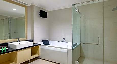 Palace Hotel Puncak provides flawless service and all the necessary facilities for visitors.Stay connected with your associates, as complimentary Wi-Fi is available during your entire visit.To facilitate your arrival and departure, you can pre-book airport transfer services prior to checking in. The hotel offers car hire amenities to assist you in discovering your desired offerings in Puncak.When arriving by car, you'll be grateful for the on-site complimentary parking at hotel. The hotel offers reception amenities including concierge service, luggage storage and safety deposit boxes to ensure a comfortable stay for guests. Should you require assistance, the ticket service and tours can also aid in booking tickets and securing reservations at the finest shows and events in the vicinity. Whether it's an extended stay or simply needing fresh attire, dry cleaning service and laundry service provided by hotel ensures your cherished travel garments stay spotless and accessible.Your stay will be comfortable with the presence of 24-hour room service, room service and daily housekeeping as an in-room amenity for your relaxation and enjoyment.To ensure the well-being and convenience of all visitors, smoking is strictly prohibited throughout the entire hotel.Smoking is permitted solely in the specified smoking zones allocated by hotel.In order to ensure the utmost level of relaxation, the guestrooms feature an inviting design and are equipped with all basic necessities, creating a delightful stay experience. To ensure a pleasant stay, a selection of rooms at hotel come furnished with blackout curtains and air conditioning, all designed with your ease in mind.Several chosen accommodations at Palace Hotel Puncak have a balcony or terrace incorporated into the room design. In select rooms, visitors can enjoy a touch of amusement with the availability of television and cable TV for their entertainment needs. Within specific rooms, a refrigerator, bottled water and a coffee or tea maker is conveniently available for your use.Understanding the significance of bathroom facilities in enhancing visitor contentment, hotel offers a hair dryer and toiletries within a few chosen chambers. Start your day stress-free at Palace Hotel Puncak as breakfast is made available for you on the premises. How about kicking off each day of your getaway with a delicious cup of coffee? At the hotel, relish in the invigorating taste of a freshly brewed, excellent coffee.Various excellent meal offerings at hotel ensure that enticing and easily accessible options are constantly available. Visitors with specific dietary preferences can savor a variety of culinary styles at Palace Hotel Puncak, featuring halal choices to accommodate their needs. Upon arrival, make sure to explore karaoke rooms and bar to experience enjoyable evening entertainment within the premises.Visitors wishing to create their personal culinary delights will appreciate the on-site shared kitchen provided at this establishment.Throughout the day, engage in the entertaining activities available at Palace Hotel Puncak.Unwind and conclude each day delightfully by stopping by massage, hot tub, steam room, spa and sauna, ensuring a soothing experience.Unwind by the pool at hotel and cherish a leisurely moment.Enjoy a refreshing beverage al fresco at hotel's poolside bar savoring your preferred concoction. Guests who enjoy maintaining their fitness regimen while on holiday can visit the fitness center provided by hotel.