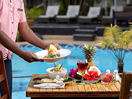 Mercure Nadi Hotel is is set within 5 acres of beautiful tropical gardens and is only 3 minutes from the airport and 5 minutes from the town center. The hotel features 85 rooms in two accommodations wings that overlook a stylish swimming pool, beautiful tropical gardens and the day spa. There is also a restaurant where you can enjoy al fresco dining on the poolside deck, as well as a relaxing bar. Hotel Mercure Nadi Fiji is located close to all major tourist attractions in Fiji, including beaches, parks, gardens, golf courses, shopping, markets, theaters, cinemas, cafes and restaurants. Guests can also enjoy island day trips, as the hotel is close to the ferry terminal. Union Pay is accepted at this property.