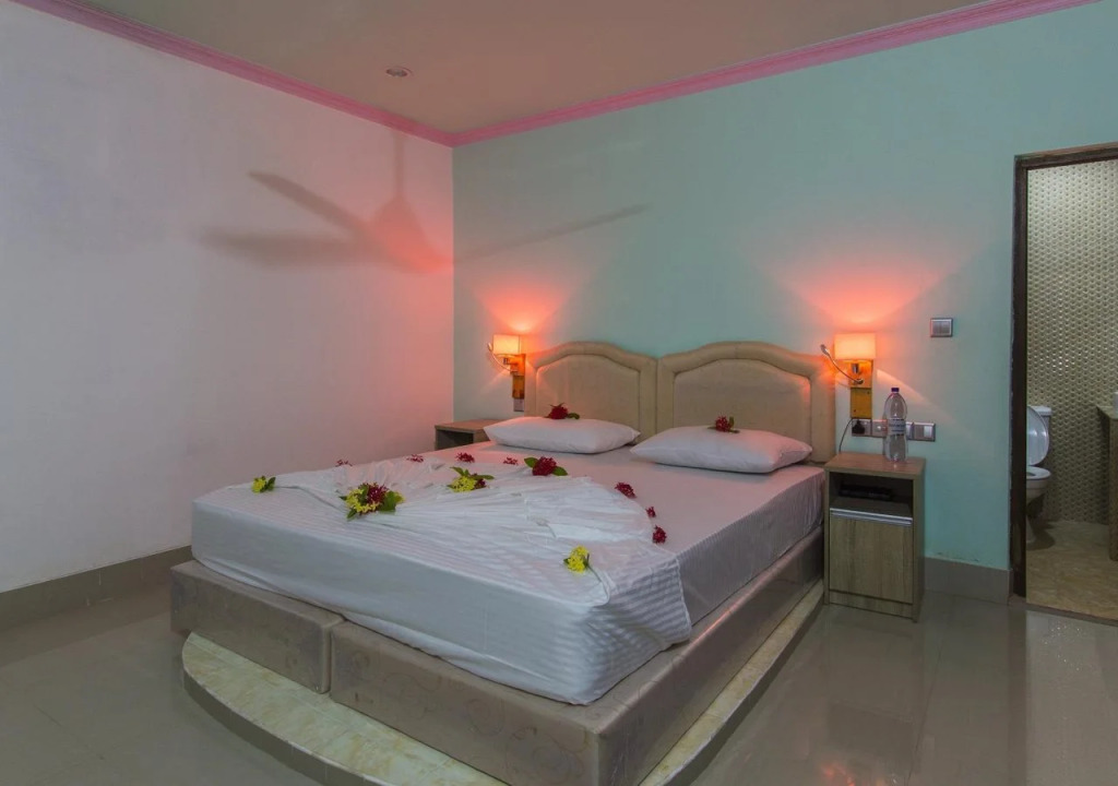 1/19 2/19 3/19 4/19 5/19 6/19 7/19 8/19 9/19 10/19 11/19 12/19 13/19 14/19 15/19 16/19 17/19 18/19 19/19 View all images Back 1/19 2/19 3/19 4/19 5/19 6/19 7/19 8/19 9/19 10/19 11/19 12/19 13/19 14/19 15/19 16/19 17/19 18/19 19/19 Previous Next The supplier or owner of this product shall be responsible for the accuracy of the above images. Viaggio shall not be responsible for innacuracies. Manta Inn Green Villa, Bodufolhudhoo, Maldives, Alif Alif Atoll, Maldives 09050 View map Hotel description Spend an evening in a nice atmosphere of the bar. It’s time to have a nice meal! Stop by the restaurant. Free Wi-Fi on the territory will help you to stay on-line. If you travel by car, there’s a parking zone. Hotel services Air conditioning 24-hour reception Smoking areas Currency exchange Smoke-free property Gift shop Express check-in/check-out Garden Private check-in/check-out Dryer Outdoor furniture Non-smoking rooms Room service Cable TV Locker Flat-screen TV Shower/Bathtub Shower Wardrobe/Closet Linens Toiletries Ironing Laundry Safe-deposit box Luggage storage Diet menu (on request) Breakfast Breakfast in the room Restaurant (buffet style) Snack bar Bottled water Free Wi-Fi Airport transportation Transfer services English Italian Free bicycle rental Library Barbecue grill(s) Karaoke Hiking Fishing Offsite parking reservations required Beach facilities Private beach Beach/pool towels Next to the beach Diving Cycling Snorkelling Babysitting and childcare Children's playground Pets Not Allowed Fullscreen Close fullscreen