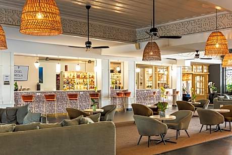1/40 2/40 3/40 4/40 5/40 6/40 7/40 8/40 9/40 10/40 11/40 12/40 13/40 14/40 15/40 16/40 17/40 18/40 19/40 20/40 21/40 22/40 23/40 24/40 25/40 26/40 27/40 28/40 29/40 30/40 31/40 32/40 33/40 34/40 35/40 36/40 37/40 38/40 39/40 40/40 View all images Back Previous Next The supplier or owner of this product shall be responsible for the accuracy of the above images. Viaggio shall not be responsible for innacuracies. Mercure Créolia Montgaillard - Colline des Camélias, Saint-Denis, Reunion, Saint Denis 97400 View map Hotel description The Hôtel Exsel Créolia is located in the north of Reunion Island. It offers a large outdoor terrace with sun loungers overlooking Saint Denis and the Indian Ocean. The air-conditioned guest rooms at Hôtel Exsel Créolia Saint-Denis La Réunion are equipped with a flat-screen TV with satellite channels. Each room also has tea and coffee making facilities and a private bathroom with shower. The hotel’s restaurant, Le Kaloupilé, serves local Creole as well as French dishes. Guests can also enjoy drinks on the poolside terrace and in the hotel bar, La Varangue. Hôtel Exsel Créolia Saint-Denis La Réunion provides a fitness room and the hotel's reception desk is open 24 hours a day. The Hôtel Exsel Créolia hotel also features the Créolia Bien-Être beauty institute, which is open to both in-house and out-of-house guests. Enjoy a moment of relaxation, body and facial treatments, nail care or even dry cleaning on the hotel's premises. For every treatment, you can enjoy free access to the hotel's swimming pool. The Exsel Creolia Hotel is proud to announce that it is officially Ecolabel certified since 2018. Many environmentally friendly services have been put in place. Indeed, it is the use of ecolabelled cleaning products, the proposal of organic products in the restaurant or the replacement of plastic straws by rice straws. It is also the use of a bean-to-cup coffee machine and the distribution of environmentally friendly messages to customers. Hotel services Room Service Car Rental Daily Housekeeping Meeting/Banquet Facilities Coffee Shop 24 hour front desk Sun Loungers Or Beach Chairs Parking - Charges may apply Fitness Center Property is cleaned with disinfectant Restaurant Property confirms they are implementing guest safety measures Ironing Amenities Bed sheets and towels are washed at a temperature of at least 60°C/140°F Shared stationery such as printed menus, magazines, pens, and paper removed Air Conditioning Hot Tub or Spa Parking - Accessibility Wheelchair Access Fire Extinguishers Facilities For Disabled Guests Available Sun Deck Balcony/Terrace Electronic Room Key Kids' Pool Swimming Pool - Outdoor Snack Bar Luggage Storage & Lockers Swimming Pool Guests are provided with free hand sanitizer Cashless Payment Available In room safe Social distancing measures are in place Evening Entertainment Internet Access - Free Public Access Elevator Outdoor Furniture First Aid Kit Available Parking - Free Smoke Alarms Acrylic shield between guests and staff in main contact areas Beauty Services Laundry Non-Smoking Rooms Available Parking - On-Site Non-Smoking Facility Happy Hour Fence Around Pool Alcohol Family Rooms Pet Friendly Lounge/Bar Information Fullscreen Close fullscreen
