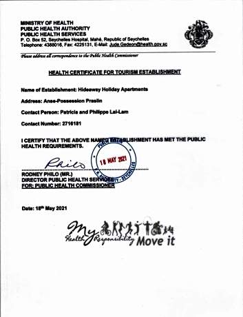 1/50 2/50 3/50 4/50 5/50 6/50 7/50 8/50 9/50 10/50 11/50 12/50 13/50 14/50 15/50 16/50 17/50 18/50 19/50 20/50 21/50 22/50 23/50 24/50 25/50 26/50 27/50 28/50 29/50 30/50 31/50 32/50 33/50 34/50 35/50 36/50 37/50 38/50 39/50 40/50 41/50 42/50 43/50 44/50 45/50 46/50 47/50 48/50 49/50 50/50 View all images Back Previous Next The supplier or owner of this product shall be responsible for the accuracy of the above images. Viaggio shall not be responsible for innacuracies. Hideaway Holiday Apartments Anse Possession, Praslin Island, Seychelles, Anse Volbert Village 30000 View map Hotel description Featuring panoramic views of the Indian Ocean, HideAway is located just 2-yards from Anse Possession Beach. It offers self-catering apartments with a private veranda. The air-conditioned apartments have an open-plan lounge, dining and kitchen area. The lounge includes a TV and the kitchenette is equipped with a stove, microwave and refrigerator. There is also a 24-hour front desk and shared lounge area. Tours and excursions can be arranged upon request. Hideaway Holiday is located only 3 minutes’ drive from Praslin Museum and Cote D’Or Beach. Prasline Island Airport is a 20-minute drive from the apartments. Hotel services Room Service Car Rental Daily Housekeeping Beachfront Diving Property is cleaned with disinfectant Fishing Property confirms they are implementing guest safety measures Bed sheets and towels are washed at a temperature of at least 60°C/140°F Shared stationery such as printed menus, magazines, pens, and paper removed Air Conditioning Access to health care professionals Picnic Area Fire Extinguishers Sun Deck Property uses a professional cleaning service Balcony/Terrace Masks are available to guests Luggage Storage & Lockers Guests are provided with free hand sanitizer Cashless Payment Available In room safe Social distancing measures are in place Internet Access - Free Public Access Outdoor Furniture Audible Alarm Adult Only Airport Transportation - Charges may apply Garden First Aid Kit Available Parking - Free Smoke Alarms BBQ Grills Non-Smoking Rooms Available Parking - On-Site Non-Smoking Facility CCTV security in common areas Information Fullscreen Close fullscreen