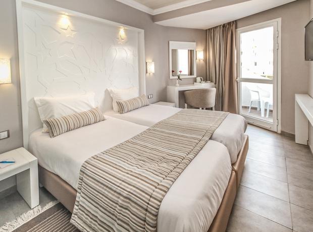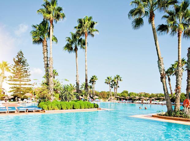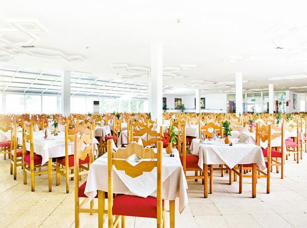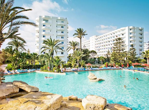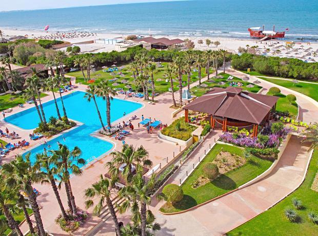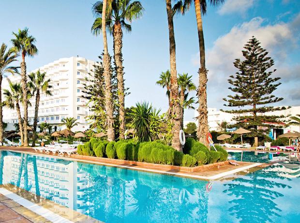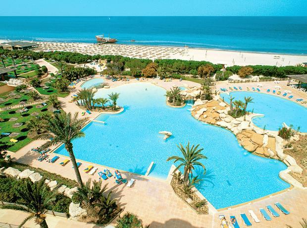 This hotel is located directly on the broad sand beach. It is also around 8 km from Monastir and 12 km from Sousse. The bus stop is situated by the main gate of the complex. The hotel is roughly 4 km from Monastir Habib Bourguiba International Airport. This beach club resort comprises three buildings with 7 storeys each. There are a total of 1,042 rooms. The resort has air conditioning, reception with safety deposit boxes, a restaurant, a pizzeria, a snack bar, a 24-hour bar, an Arabian cafe, several bars with satellite TV and boutiques. For the younger guests, there is a kids club, a playground and a games room. The beach bar is shaped like a sailing ship. A newspaper stand, a hairdressing salon, a TV lounge and WLAN Internet access are also available. All the rooms have shower and WC, and each one comes equipped with direct dial telephone, air conditioning, central heating and a balcony with a lateral sea view.