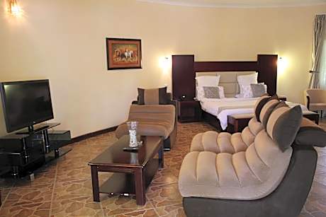 1/50 2/50 3/50 4/50 5/50 6/50 7/50 8/50 9/50 10/50 11/50 12/50 13/50 14/50 15/50 16/50 17/50 18/50 19/50 20/50 21/50 22/50 23/50 24/50 25/50 26/50 27/50 28/50 29/50 30/50 31/50 32/50 33/50 34/50 35/50 36/50 37/50 38/50 39/50 40/50 41/50 42/50 43/50 44/50 45/50 46/50 47/50 48/50 49/50 50/50 View all images Back Previous Next The supplier or owner of this product shall be responsible for the accuracy of the above images. Viaggio shall not be responsible for innacuracies. Chamba Valley Exotic Hotel Lusaka, Zambia, Lusaka 10101 View map Hotel description Chamba Valley Exotic Hotel is located on the outskirts of the Chamba Valley, 8.1 mi from the Kenneth Kaunda International Airport. The hotel offers free WiFi in all rooms and has a large outdoor swimming pool. The rooms come fitted with a work desk, flat-screen satellite TV and an private bathroom with a separate bath tub and shower. The Executive and King rooms offer an electronic safe, hairdryer, tea-and-coffee-making facilities, as well as complimentary bath slippers. At Chamba Valley Exotic Hotel, the Milile restaurant serves mouth-watering Zambian and international cuisine, offering indoor and outdoor seating. Guests can enjoy a drink at the bar, and for the soccer enthusiasts you can watch live soccer games as well. Other facilities at the hotel include a fitness center with a sauna and the tour desk can assist guests with arranging excursions and shuttle services at a charge. The hotel also has 6 conference rooms. The Lusaka City Airport and Manda Hill Shopping Mall is within 6.2 mi. Hotel services Room Service Daily Housekeeping Meeting/Banquet Facilities 24 hour front desk Sun Loungers Or Beach Chairs Fitness Center Property is cleaned with disinfectant Restaurant Property confirms they are implementing guest safety measures Bed sheets and towels are washed at a temperature of at least 60°C/140°F Shared stationery such as printed menus, magazines, pens, and paper removed Air Conditioning Hot Tub or Spa Parking - Accessibility Access to health care professionals Shared Lounge/TV Area Fax/Photocopying Property uses a professional cleaning service Babysitting Services Kids' Pool Swimming Pool - Outdoor Luggage Storage & Lockers Swimming Pool Guests are provided with free hand sanitizer Cashless Payment Available Social distancing measures are in place Takeout Dining Services Available Attraction Shuttle Service - Charges may apply Internet Access - Free Public Access Airport Transportation - Charges may apply Garden First Aid Kit Available Parking - Free All plates, cutlery, glasses and other tableware have been sanitized Acrylic shield between guests and staff in main contact areas Laundry Non-Smoking Rooms Available Parking - On-Site Aerobics Happy Hour Fence Around Pool Alcohol Family Rooms Lounge/Bar Food Delivery Information Fullscreen Close fullscreen