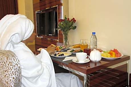1/11 2/11 3/11 4/11 5/11 6/11 7/11 8/11 9/11 10/11 11/11 Ver todas Volver Anterior Siguiente El proveedor o propietario de este producto es responsable de asegurar la exactitud de las fotografías mostradas en esta sección. Viaggio no se hace responsable en caso de inexactitud. Sheger Royal Hotel Namibia St, Addis Ababa, Ethiopia, Addis Ababa 00000 Ver mapa Descripción del hotel A stay at Golden Royal Hotel places you in the heart of Addis Ababa, a 1-minute drive from Edna Mall and 12 minutes from Addis Ababa Stadium. This hotel is 2.8 mi (4.5 km) from Shola Market and 2.8 mi (4.5 km) from Meskel Square. Pamper yourself with onsite massages or enjoy recreation amenities such as a fitness center. Additional features at this hotel include complimentary wireless Internet access, concierge services, and babysitting/childcare (surcharge). Featured amenities include complimentary wired Internet access, a business center, and complimentary newspapers in the lobby. This hotel has 2 meeting rooms available for events. A roundtrip airport shuttle is complimentary (available 24 hours). Grab a bite to eat at Sheger, a restaurant which features a bar/lounge, or stay in and take advantage of the 24-hour room service. A complimentary buffet breakfast is served daily from 6 AM to 10 AM. Make yourself at home in one of the 36 guestrooms featuring minibars and flat-screen televisions. Rooms have private balconies or patios. Complimentary wired and wireless Internet access keeps you connected, and cable programming provides entertainment. Private bathrooms with showers feature rainfall showerheads and complimentary toiletries.. ((* Lo sentimos, no existe la ficha en el idioma solicitado y se proporciona en EN) Servicios del hotel 24 hour front desk Fitness Center Restaurant Breakfast - Charges may apply Babysitting Services Airport Transportation Dry cleaning service Non-Smoking Facility Business Center Pantalla completa Cerrar la pantalla completa