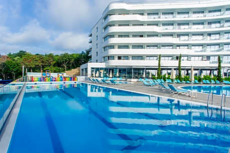 Boasting an outdoor swimming pool and a private beach area with sunbeds, Astoria Hotel All Inclusive- Private Beach & Beach Club is located on Golden Sands, a 10-minute walk from Golden Sands Center.The hotel offers a Free WiFi and paid parking.. All units at Astoria Hotel All Inclusive- Private Beach & Beach Club include a flat-screen TV with cable channels, a sofa and a safety box. Some units offer a balcony and sea view. A private bathroom with shower is also featured. The hotel includes 3 restaurants part of the All Inclusive program and organizes themed dinners such as Bulgarian, Italian and Spanish, also a Gala dinner, live music shows and performances, as well as our fully renovated Beach Club Astoria- where the guests may enjoy diverse meals and snacks completely free of charge. Guest can enjoy a meal at the main buffet restaurant, as well as Italian and Asian restaurant, have a drink at the on-site bar or refreshing morning coffees, cool beers at lunch, or an afternoon cocktail on the Beach Club Astoria. A buffet breakfast is provided every morning at the hotel. Aladzha Monastery is 3.1 mi from Astoria Hotel All Inclusive- Private Beach & Beach Club while Baltata is 5.8 mi away. The nearest airport is Varna Airport, 16 mi from the property. Astoria Hotel All Inclusive- Private Beach & Beach Club is located at the beachfront of Golden Sands, a 10-minute walk from Golden Sands Center. Astoria Hotel All Inclusive- Private Beach & Beach Club is a hotel complex consisting of two buildings: the 6 floors Astoria Mare and 11 floors Astoria buildings. License Number(s): В1-ВВ0-74Е-Б1. ((* Sorry, this information is not available in the selected language and is shown in EN)