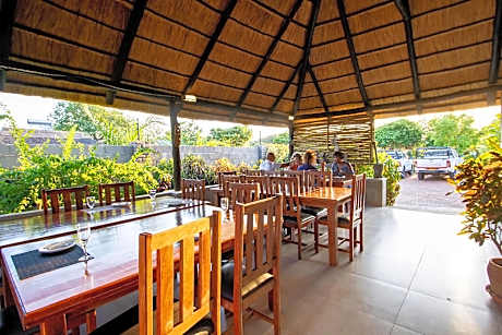 1/27 2/27 3/27 4/27 5/27 6/27 7/27 8/27 9/27 10/27 11/27 12/27 13/27 14/27 15/27 16/27 17/27 18/27 19/27 20/27 21/27 22/27 23/27 24/27 25/27 26/27 27/27 Voir toutes Retour Précédent Suivant Il incombe à la chaîne hôtelière et à la propriété individuelle d'assurer l'exactitude des photos affichées. Viaggio n'est aucunement responsable des inexactitudes susceptibles de survenir dans ces dernières. Dzimbahwe Guest Lodge 703 Aerodrome, 00000, VICTORIA FALLS, Victoria Falls 00000 View map Description de l'hôtel Located in Victoria Falls, Dzimbahwe Guest Lodge is within a 15-minute drive of Victoria Falls and Victoria Falls National Park. This guesthouse is 1. 3 mi (2. 1 km) from Zambezi National Park and 3. 2 mi (5. 2 km) from Devil's Pool. Take in the views from a terrace and a garden and make use of amenities such as complimentary wireless Internet access. Additional features at this guesthouse include concierge services, a television in a common area, and a picnic area. Featured amenities include a 24-hour front desk and luggage storage. A roundtrip airport shuttle is available for a surcharge. Quench your thirst with your favorite drink at the bar/lounge. Full breakfasts are available daily from 7 AM to 9 AM for a fee. Make yourself at home in one of the 6 air-conditioned rooms featuring plasma televisions. Complimentary wireless Internet access keeps you connected, and satellite programming is available for your entertainment. Bathrooms feature bathtubs or showers, complimentary toiletries, and hair dryers. Conveniences include safes and ceiling fans, and housekeeping is provided daily.. ((* Sorry, this information is not available in the selected language and is shown in EN) Services de l’hôtel 24 hour front desk Airport Transportation BBQ Grills Plein écran Fermer le plein écran