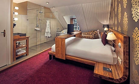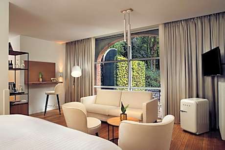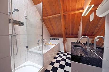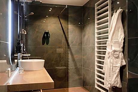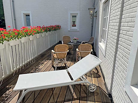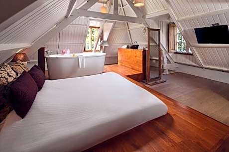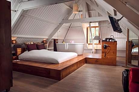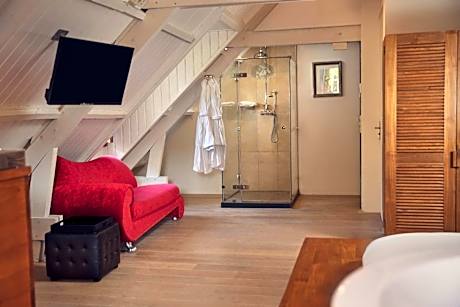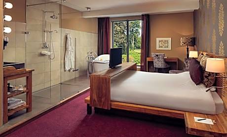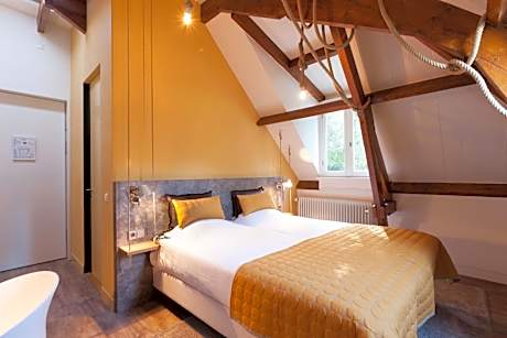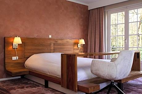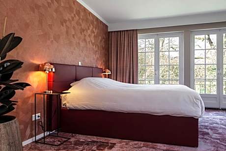Welcome to Landgoed Groot Warnsborn, located in a unique location on the edge of the Veluwe. Enjoy the peaceful and wooded surroundings, close to the center of Arnhem, where you k benefit from free parking and excellent service. Our estate also offers the exclusive fine dining restaurant La Belle Source, where you can enjoy a culinary 6- to 8-course dinner. For a slightly more informal experience, return to our brasserie de Bron, where we offer a 3-course choice menu. Every dish in the kitchen of Landgoed Groot Warnsborn is prepared with homegrown products whenever possible. Both restaurants also have their own private terrace where you can enjoy lunch or dinner outside. Our luxury 4-star hotel has 40 beautiful unique rooms, divided over two buildings. The manor house has 25 unique rooms, while the coach house offers another 15 rooms. Keep in mind that each room has its own character. The rooms in the manor house are actually divided into 3 different styles. First, we have rooms in the mansion that are decorated in the New York style. The main feature of these is that you should consider OPEN BATHROOMS. Next, we have 8 renovated rooms, which we like to describe as "classic in a new look. These rooms feature old rose tones and bathrooms with green marble. Finally, in the ridge of the mansion we have 2 Warnsborn suites. It is important to note that these suites also have OPEN BATHROOMS, as shown in the photos. In addition, it is important to note that you cannot access these suites by elevator. The rooms in the coach house on the first floor all have private terraces and are Scandinavian in style. While the rooms on the second floor, on the other hand, is decorated more bohemian with colors such as ochery yellow and red. Each room comes with free WIFI and a private bathroom. But beware because there are rooms with an open bathroom. Landgoed Groot Warnsborn is the ideal base for exploring beautiful hiking and cycling routes. The estate consists of no less than 750 acres of monumental land. Moreover, its proximity to the National Park De Hoge Veluwe is definitely worth exploring. There are also other attractions such as the Open Air Museum, Burgers Zoo, and the Kroller-Muller Museum, all of which can be reached within 5 minutes by car from our estate. We welcome you to Landgoed Groot Warnsborn for an unforgettable stay full of nature, culinary delights and relaxation.. ((* Sorry, this information is not available in the selected language and is shown in EN)