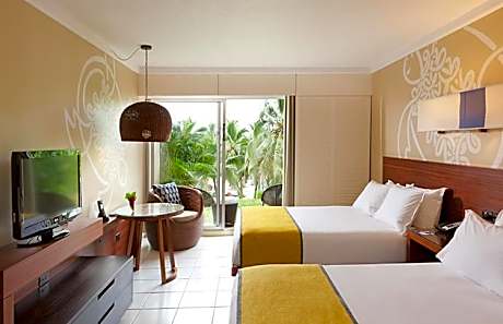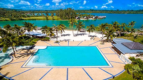 Overlooking the calm waters of Erakor Lagoon, Holiday Inn Resort Vanuatu features a variety of Melanesian inspired rooms, two swimming pools, kids club, Namele Day Spa, tennis courts and nine-hole golf course. Each room has a private balcony with garden or lagoon views. All rooms include air conditioning, ceiling fans, in-room movies and cable TV. The large work space offers high-speed internet access. Each private bathroom has a hairdryer and bathtub. Facilities at Holiday Inn Resort Vanuatu include a fitness room with lagoon views, tennis court and non-motorized water sports. Namele Day Spa offers traditional healing remedies and classic spa therapies. Veranda Restaurant offers buffet and à la carte meals for breakfast and dinner. Guests can enjoy a drink by the pool, or relax on the outdoor terrace in the Lobby Bar. Children under 12 years of age stay and eat for free. Port Vila town center is 5 mi from Holiday Inn Resort Vanuatu. An airport shuttle service can be arranged. -Please be advised per the Department of Water Vanuatu, swimming, diving and fishing is not allowed in the lagoon till further notice. -Our pool side activities have not been impacted, our hotel swimming pools, cabanas by the lagoon and our pool bar facilities are operational per normal. There is no restriction on use of kayaks and catamarans.. ((* Sorry, this information is not available in the selected language and is shown in EN)