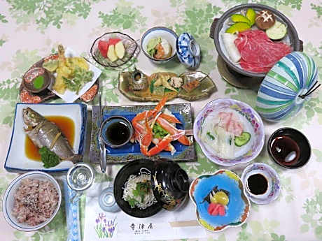 1/21 2/21 3/21 4/21 5/21 6/21 7/21 8/21 9/21 10/21 11/21 12/21 13/21 14/21 15/21 16/21 17/21 18/21 19/21 20/21 21/21 查看全部 返回 上一页 下一页 该产品的供应商或所有者应对上述图像的准确性负责。Viaggio 对任何不准确的内容概不负责。 TerazuyaRyokan 60 Tenjinmachi, Matsue-shi, Shimane-ken 690-0064, Japan, Shimane 690-0064 View map 酒店说明 Terazuya Ryokan provides flawless service and all the necessary facilities for visitors.Stay connected with your associates, as complimentary Wi-Fi is available during your entire visit. The ryokan offers shuttle amenities to assist you in discovering your desired offerings in Matsue.When arriving by car, you'll be grateful for the on-site complimentary parking at ryokan.The ryokan's daily housekeeping ensures an excellent option for your stay.To ensure the well-being and convenience of all visitors, smoking is strictly prohibited throughout the entire ryokan.In order to ensure the utmost level of relaxation, the guestrooms feature an inviting design and are equipped with all basic necessities, creating a delightful stay experience. To ensure your satisfaction, certain rooms in the ryokan come fitted with air conditioning for a more pleasant stay.Selected rooms offer in-room amusement like television as a source of entertainment for guests to enjoy.You'll be pleased to know that select guest bathrooms offer bathroom amenities such as toiletries, ensuring a comfortable stay. Each day, arise to a delightful complimentary morning meal at Terazuya Ryokan. Various excellent meal offerings at ryokan ensure that enticing and easily accessible options are constantly available.. ((* Sorry, this information is not available in the selected language and is shown in EN) 酒店服务 Daily Housekeeping Cable/Satellite TV Seating Area Restaurant Air Conditioning Breakfast - Free Parking - Off-Site Attraction Shuttle Service - Charges may apply Internet Access - Free Public Access Adult Only Facility Heat Parking - Free Toiletries Provided Parking - On-Site Non-Smoking Facility 信息 全屏 关闭全屏